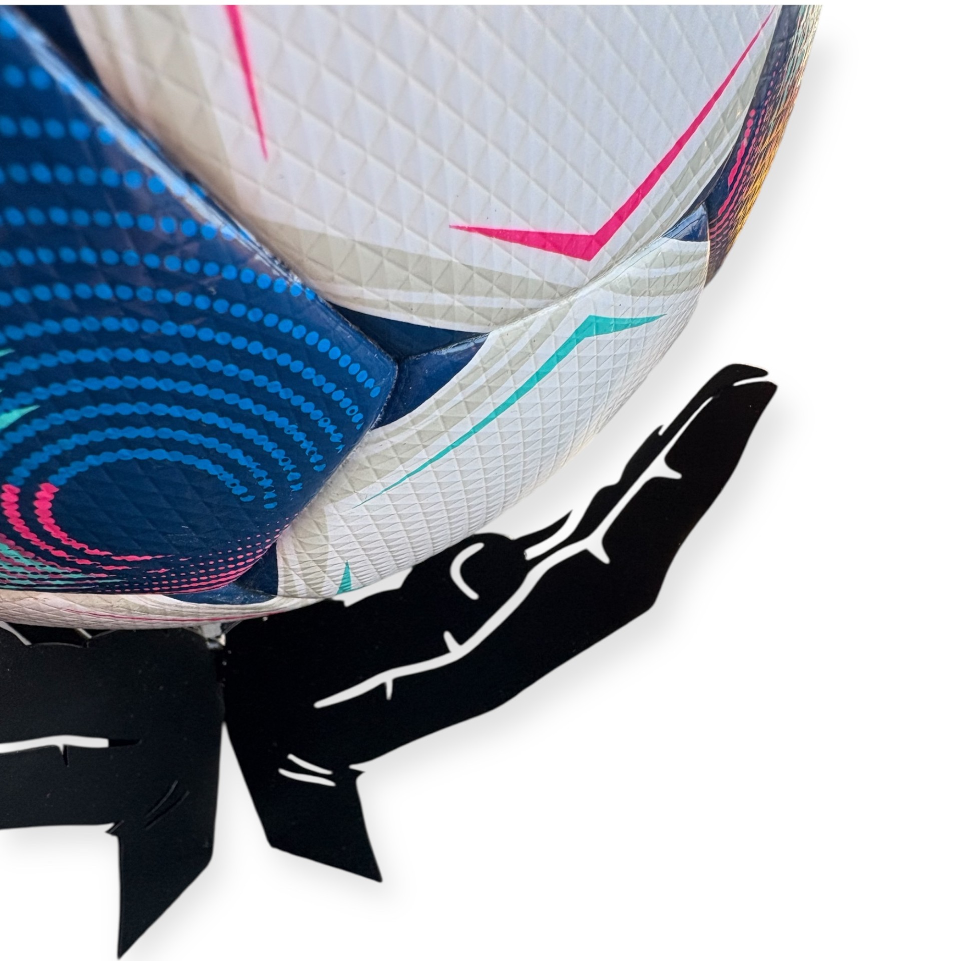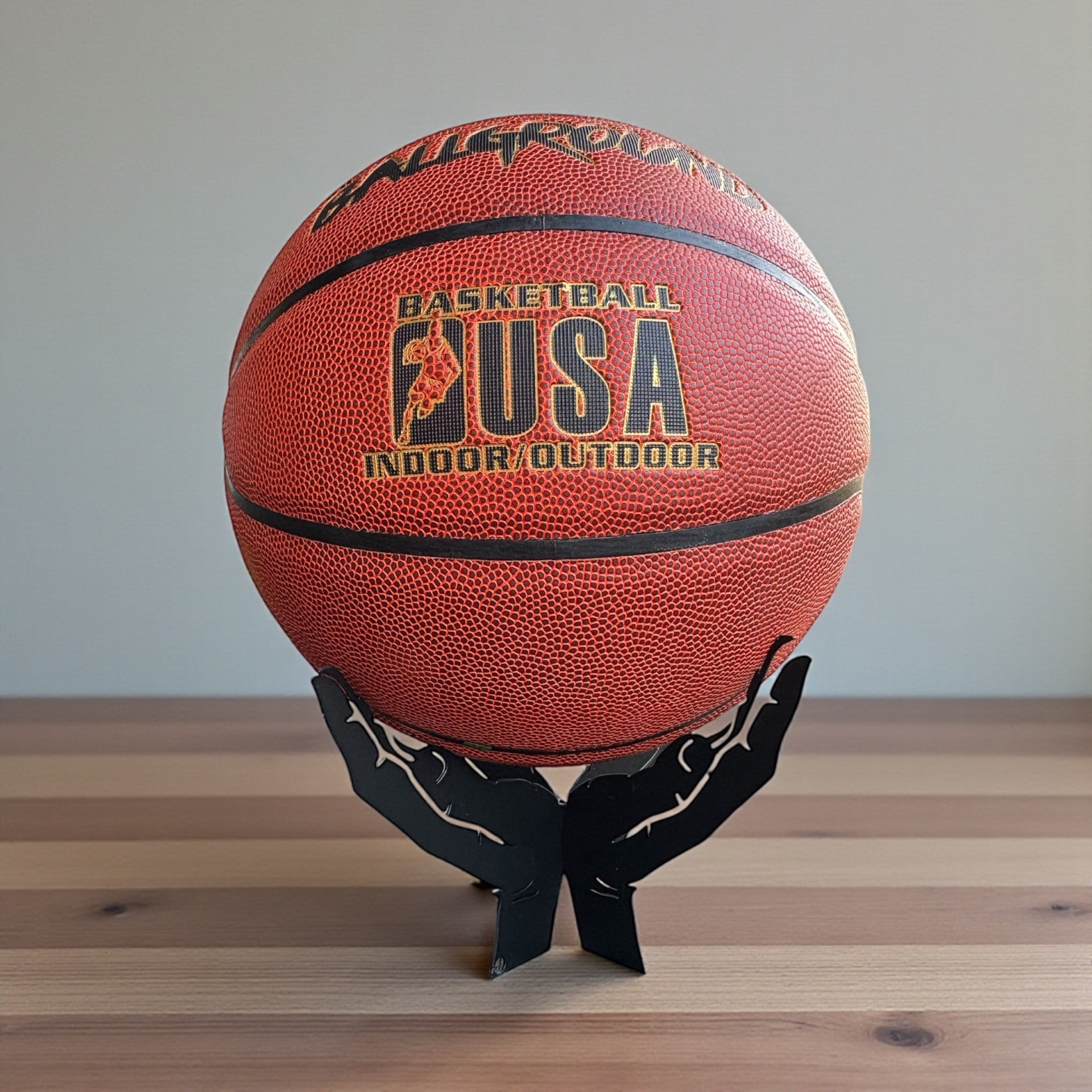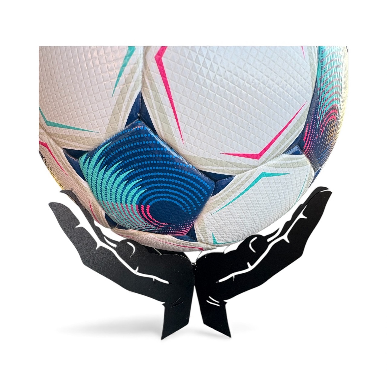 Giv din yndlingsbold den plads, den fortjener. Denne stilrene og håndlavede boldholder er designet som to åbne hænder, der elegant bærer bolden og gør den til et ægte blikfang. Boldholderen passer til mange typer sportsbolde – fodbold, håndbold, basketball, volleybolde og er fremstillet i sort lakeret metal, som giver et eksklusivt og moderne udtryk. Perfekt til kontoret, stuen, klubhuset eller børneværelset.