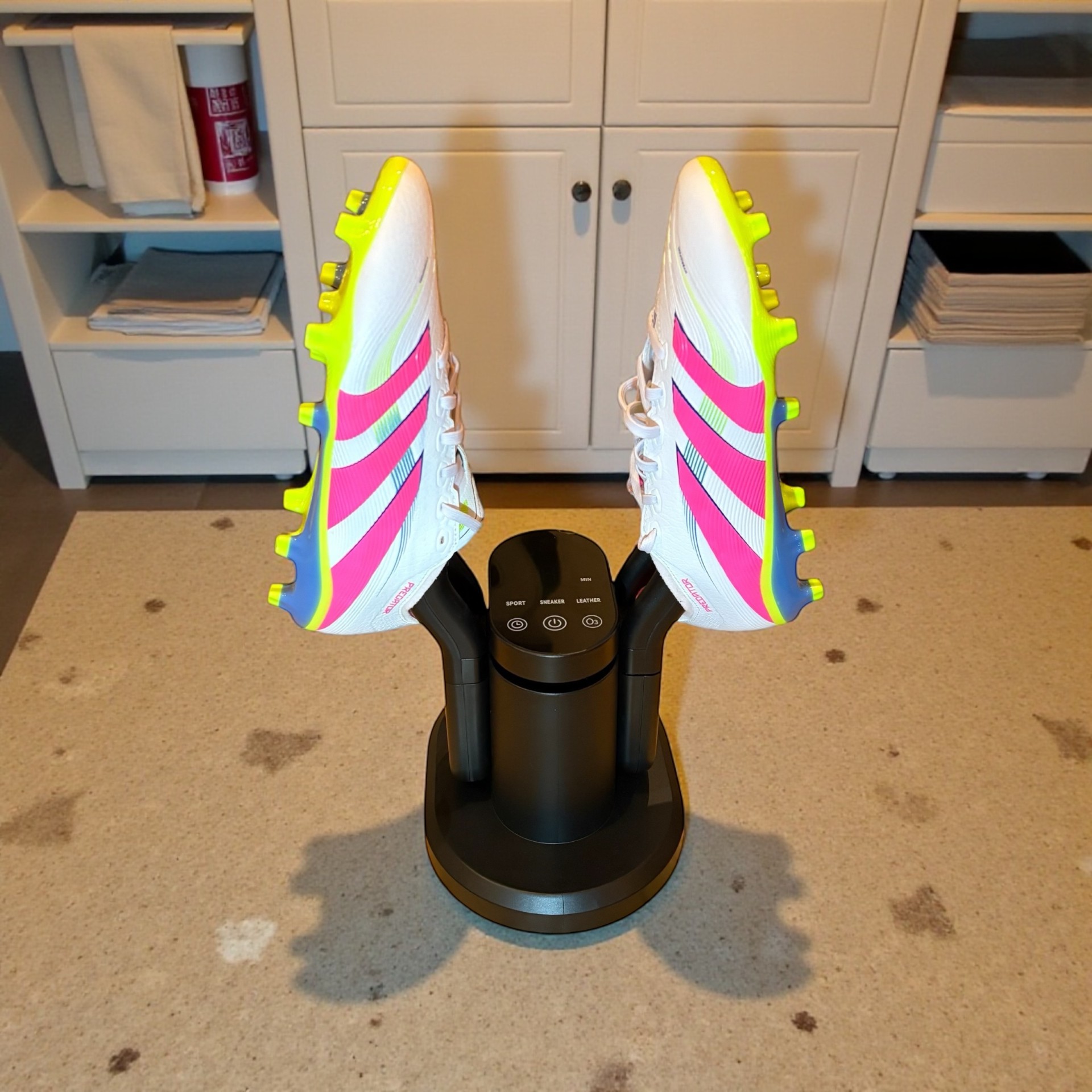 Tørreren kan indstilles i forskellige temperaturer der skånsomt tørrer skoene uden risiko for beskadigelse. Med justerbar tørretid kan du tilpasse tørringen til forskellige typer af fodboldudstyr. Denne alsidige tørrer er egnet til støvler, sportssko, flade sko samt handsker, huer og sokker med mere.