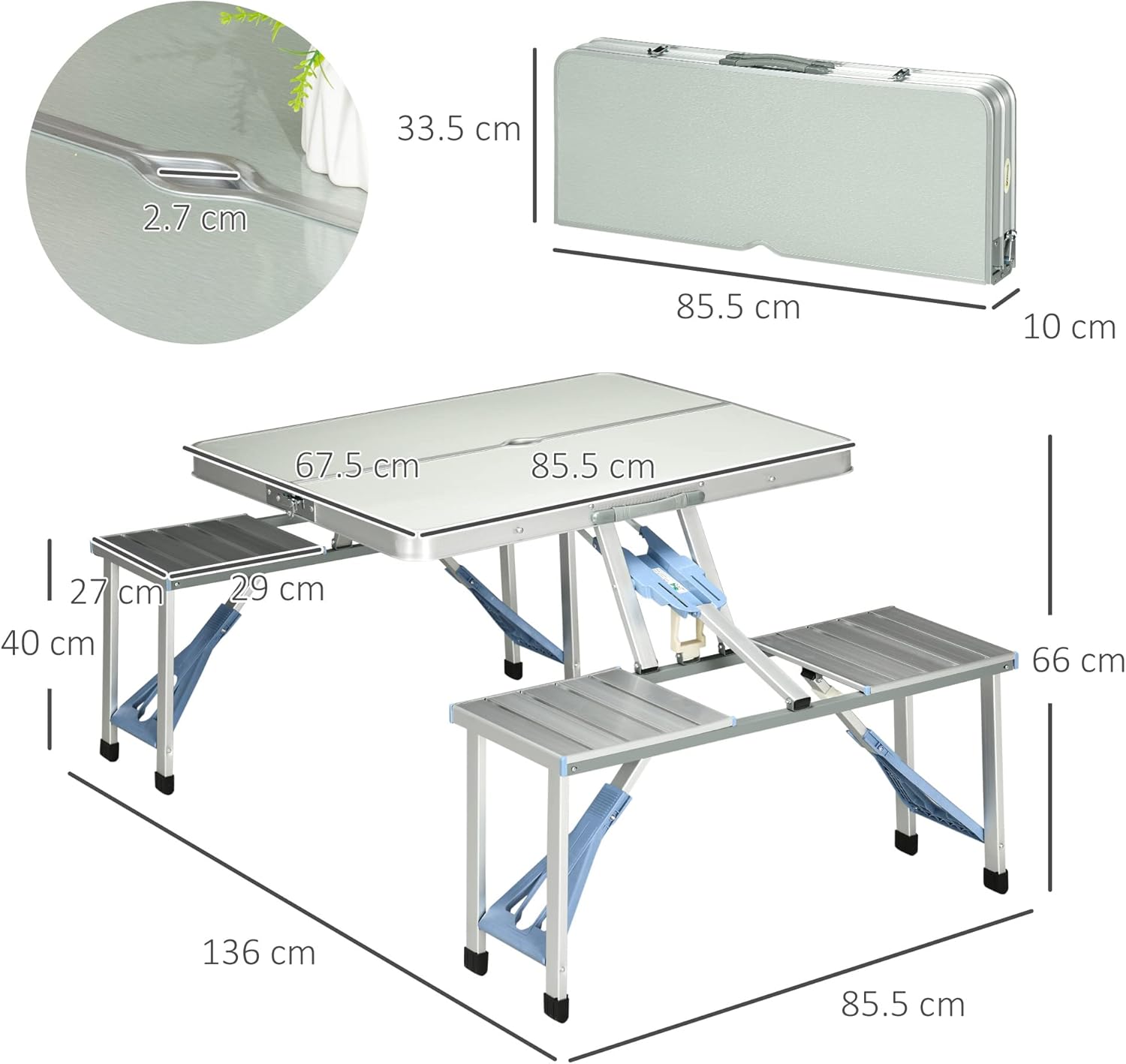 Når det er tid til at pakke sammen, foldes picnicbordet hurtigt og nemt sammen til en kompakt størrelse, der let kan transporteres og opbevares perfekt i bilen eller campingvognen.