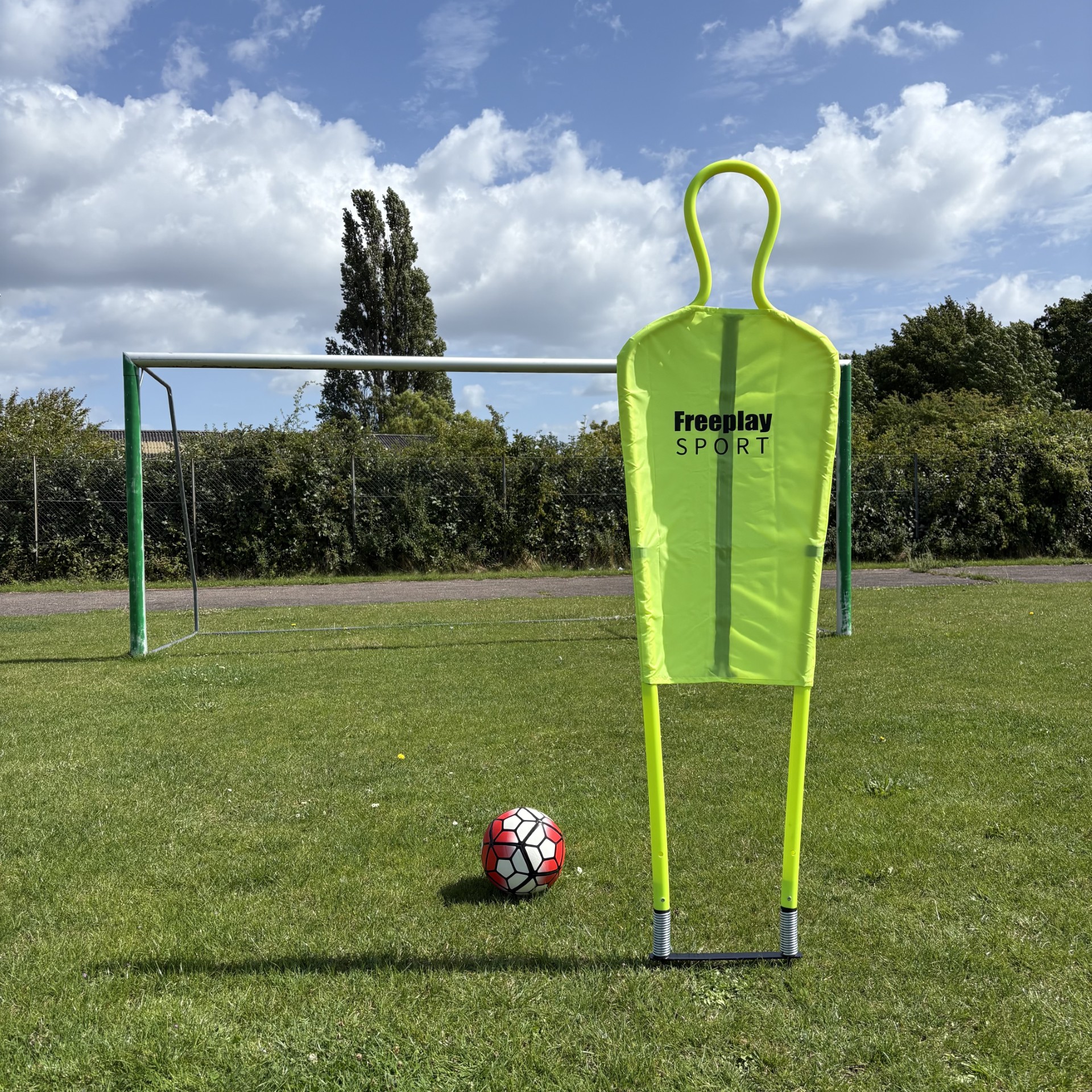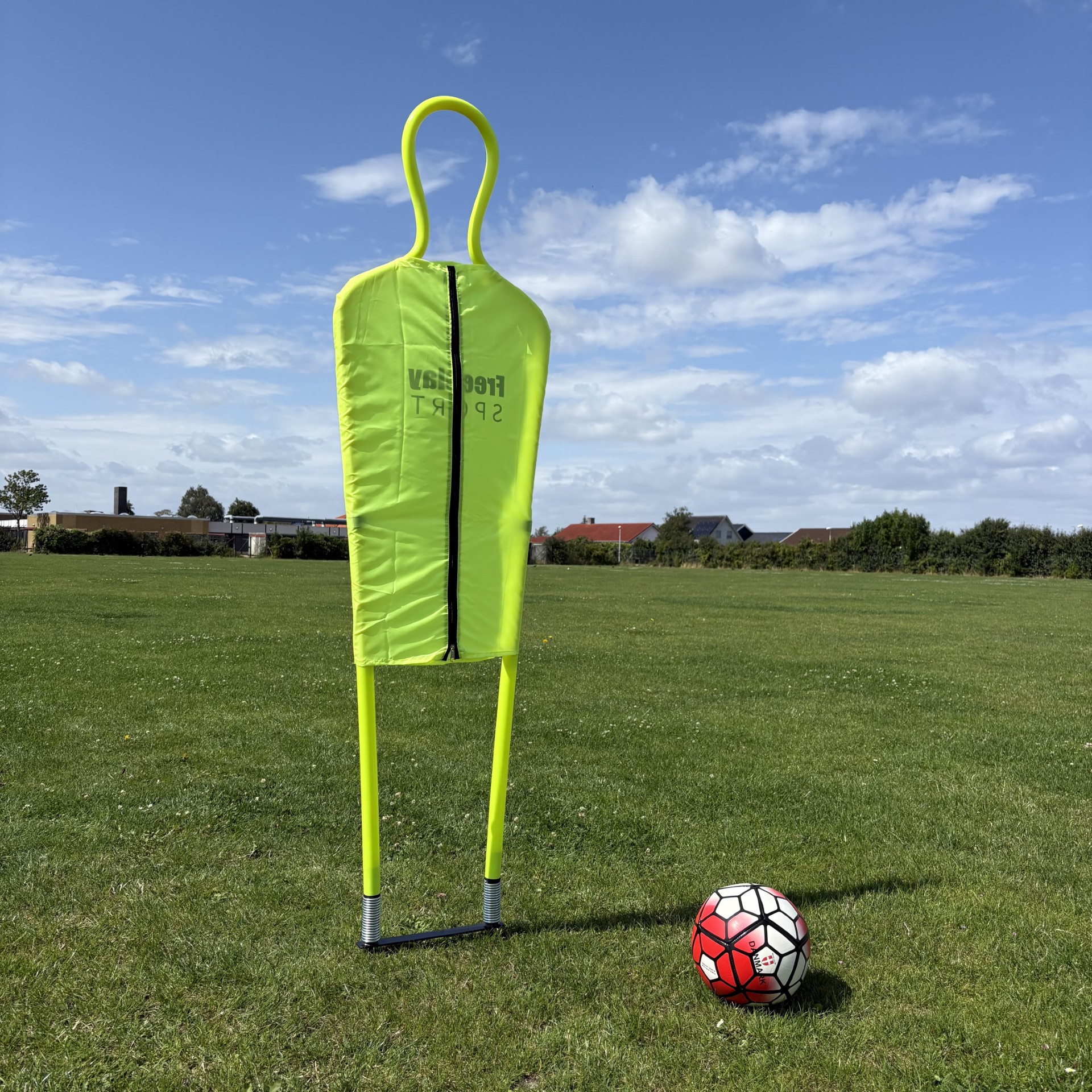 Nu har du muligheden for rigtigt at træne frispark og andre øvelser som de profesionelle fodboldspillere hjemme i haven. Denne træningsfigur stikker du bare i jorden via medfølgende spyd og du er klar til træning. Kan enten sættes i fodboldmålet som en målmand eller som en forsvars fodboldspiller.