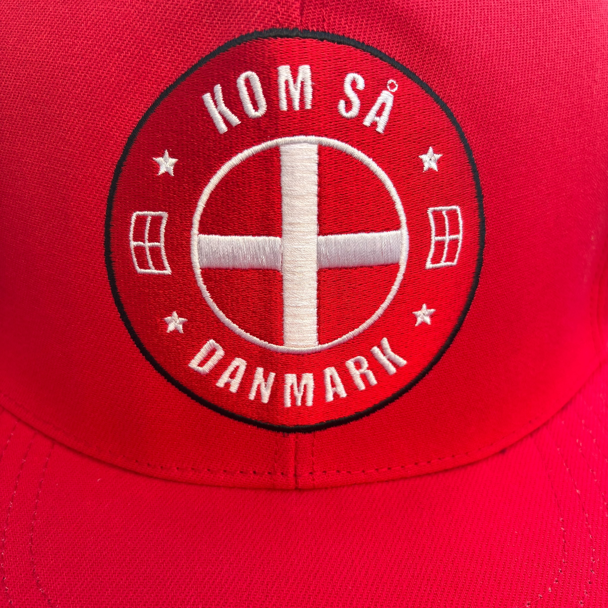 - Broderet danmarks logo på front samt bagside af cap.